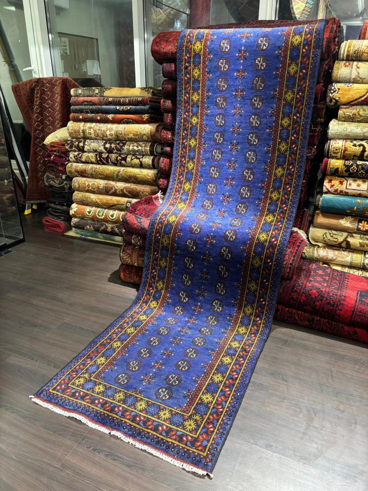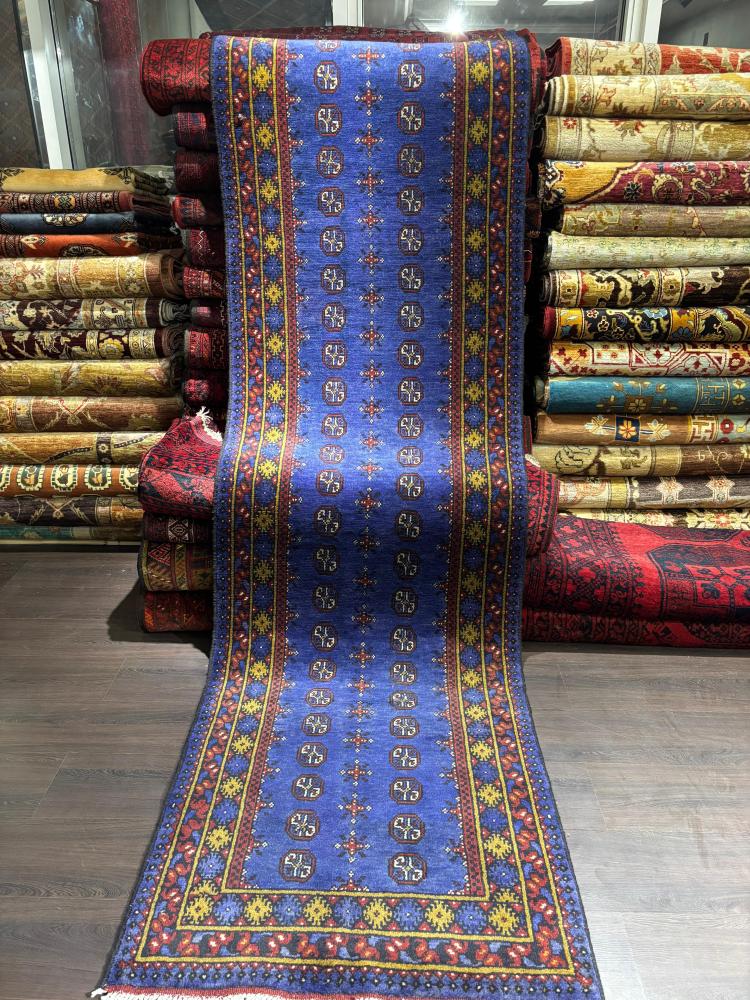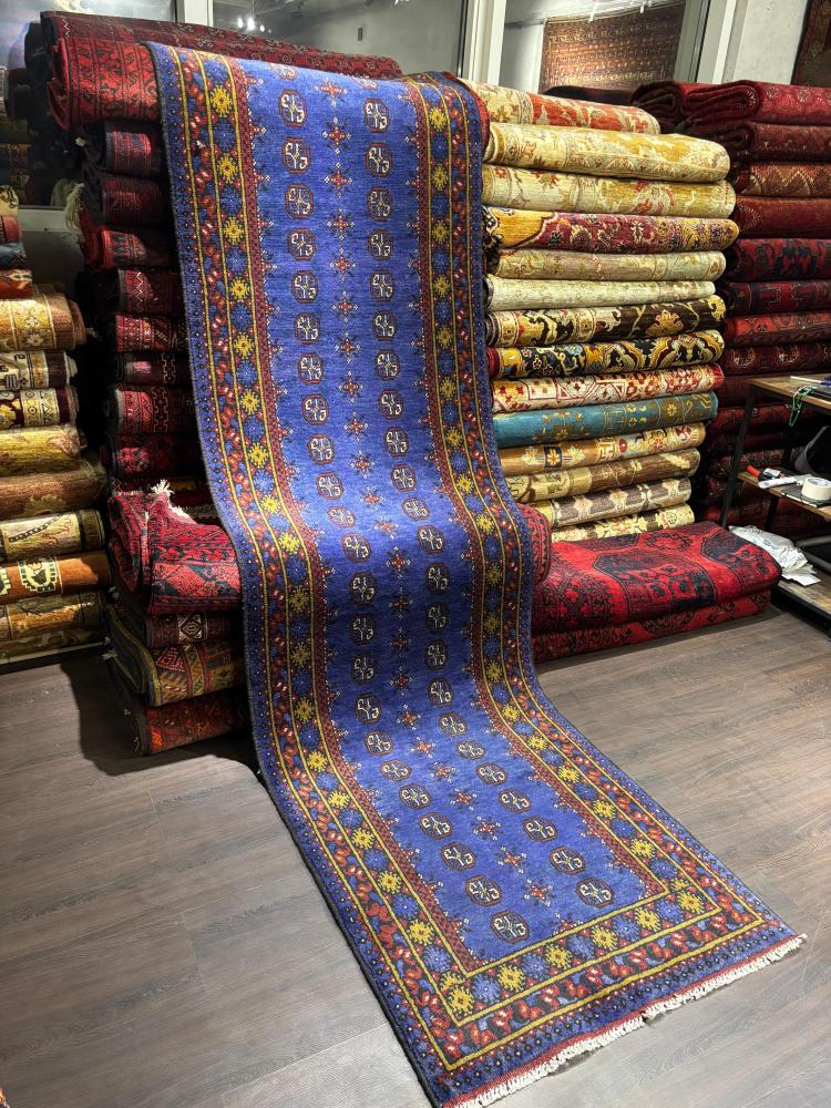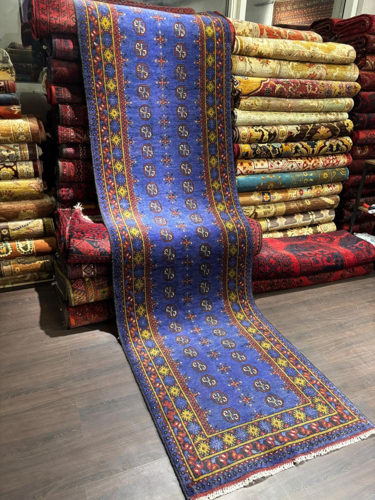 سجادة صوف أفغانية صناعة يدوية – مقاس 300×80 سم